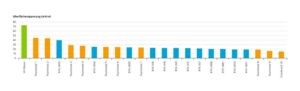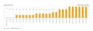 All effects were measured at 0.02% active matter. In practice, dosage series are advisable for optimal performance. Similar behavior is seen in a waterborne 2K PU clearcoat (Fig. 2), where surface tension drops from 34.2 to below 30.0 mN/m with just 0.1% fluorine-free surfactant. This improves both wetting and flow. Fluorosurfactants often lower surface tension excessively and influence other properties, such as foam stabilisation. A foam test (scale 1 = no foam to 5 = high foam stability) reveals significantly lower foam stabilisation with fluorine-free surfactants. Almost all fluorosurfactants strongly stabilise foam.